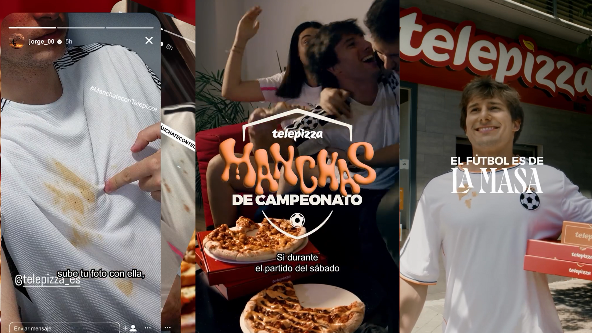 Por eso, y aprovechando la campaña de lanzamiento de las Jugonas, Telepizza creó Manchas de Campeonato. Una acción en la que mancharse la camiseta con nuestras pizzas tenía premio.